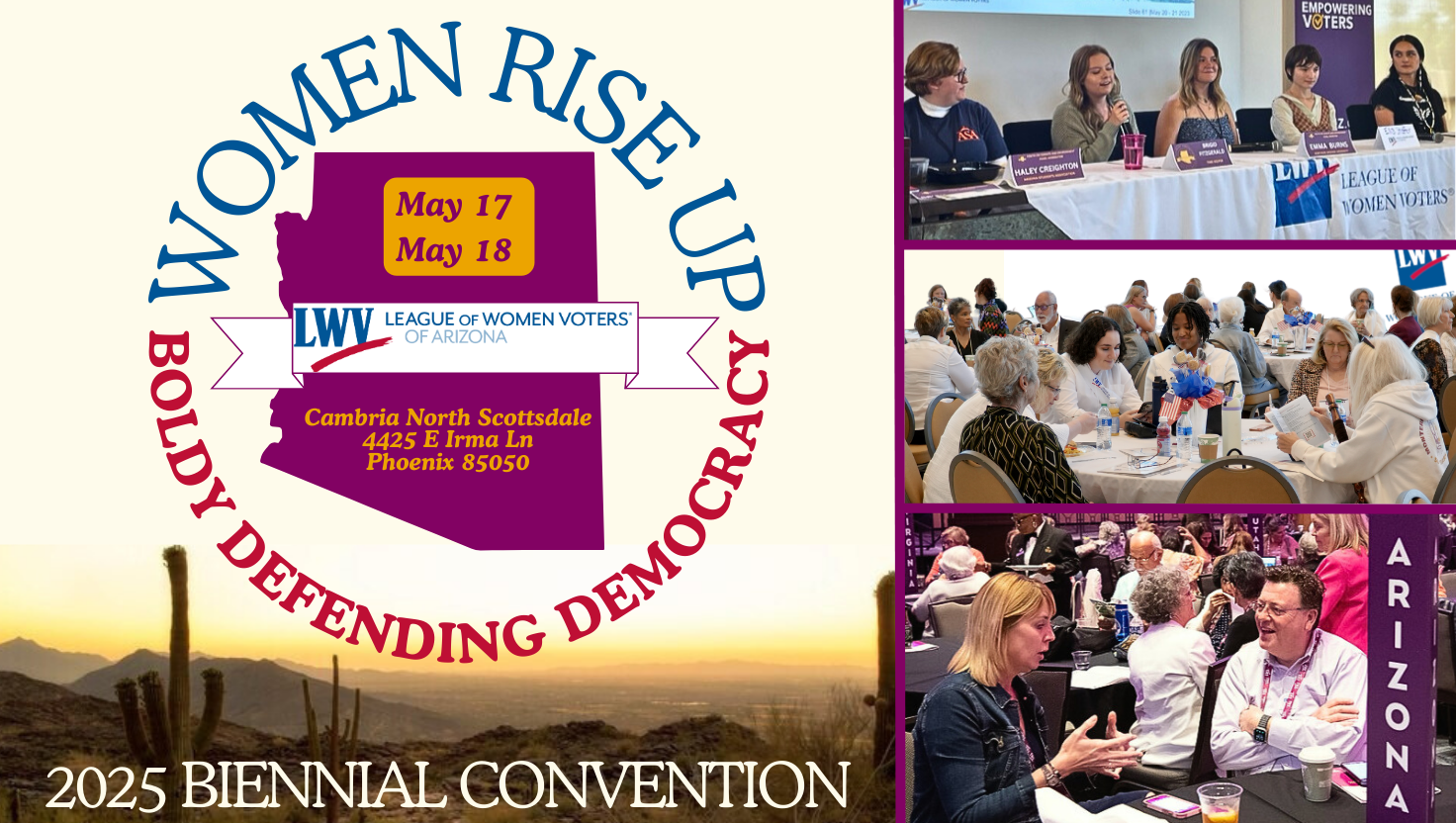 League Members - Join us for the League of Women Voters of Arizona 2025 Biennial Convention, where we’ll come together with courage, perseverance, and bold action. At a time when democracy faces unprecedented challenges, we are called to unite, raise our voices, and take meaningful steps to protect our rights and our communities.